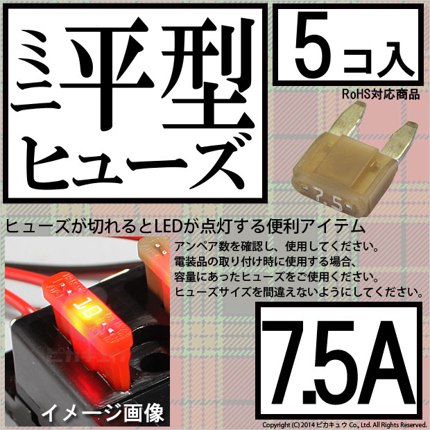 【即納】【メール便可】インテリジェントヒューズ ミニ平型ヒューズ 7.5A 入数5個 切れたら光ってお知らせ