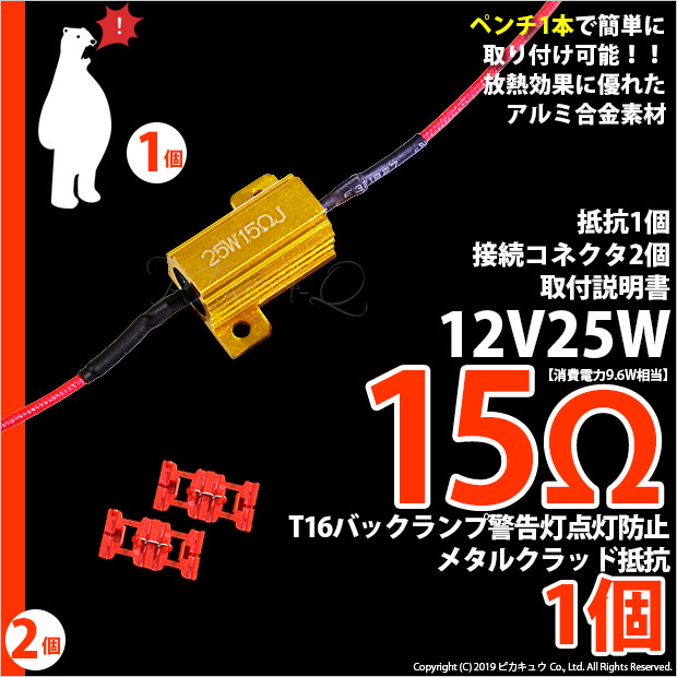 【即納】【メール便可】[15Ω]バックランプ警告灯点灯防止抵抗(12V T16 16W球用)1セット1個入