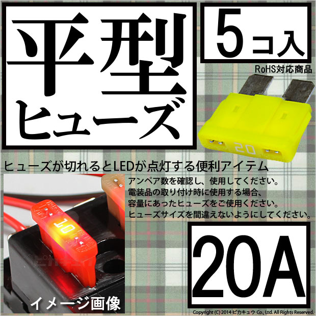 【即納】【メール便可】インテリジェントヒューズ 平型ヒューズ 20A 入数5個 切れたら光ってお知らせ