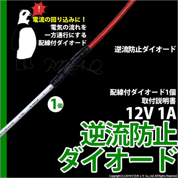 【即納】【メール便可】逆流防止ダイオード1Aタイプ【配線付き】(DC12V車用) 1セット1個入