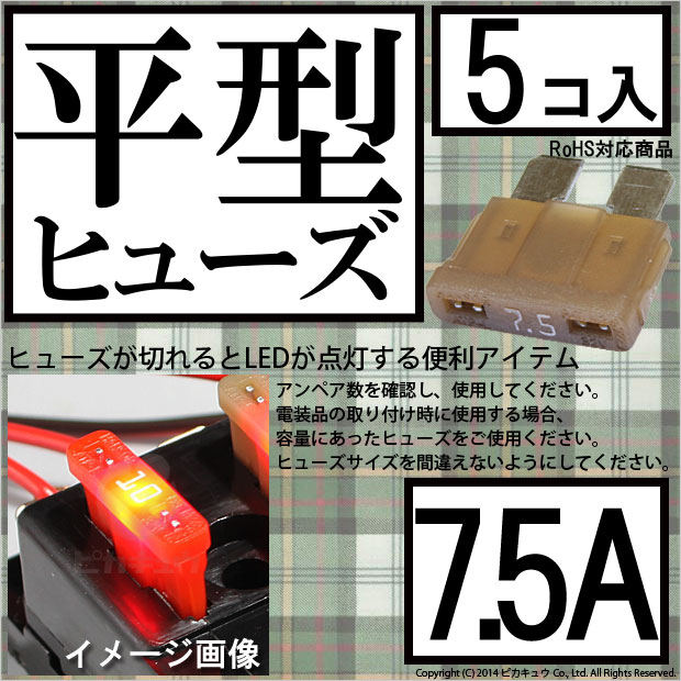 【即納】【メール便可】インテリジェントヒューズ 平型ヒューズ 7.5A 入数5個 切れたら光ってお知らせ