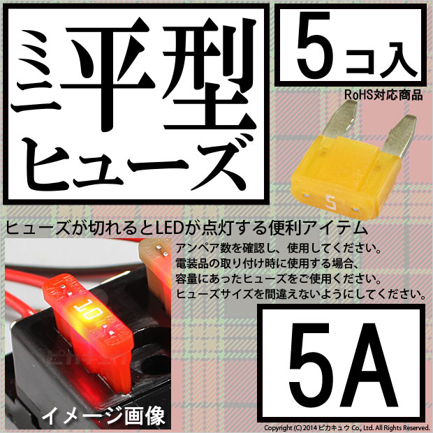 【即納】【メール便可】インテリジェントヒューズ ミニ平型ヒューズ 5A 入数5個 切れたら光ってお知らせ