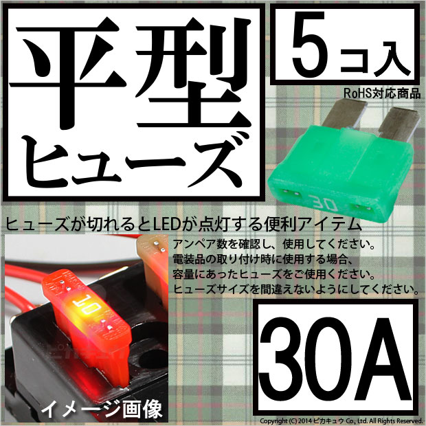 【即納】【メール便可】インテリジェントヒューズ 平型ヒューズ 30A 入数5個 切れたら光ってお知らせ