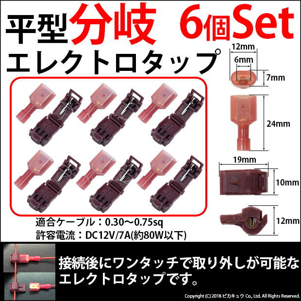 【即納】【メール便可】平型分岐エレクトロタップ 適合ケーブル:0.30~0.75sq 6個Set 接続後にワンタッチで取り外しが可...