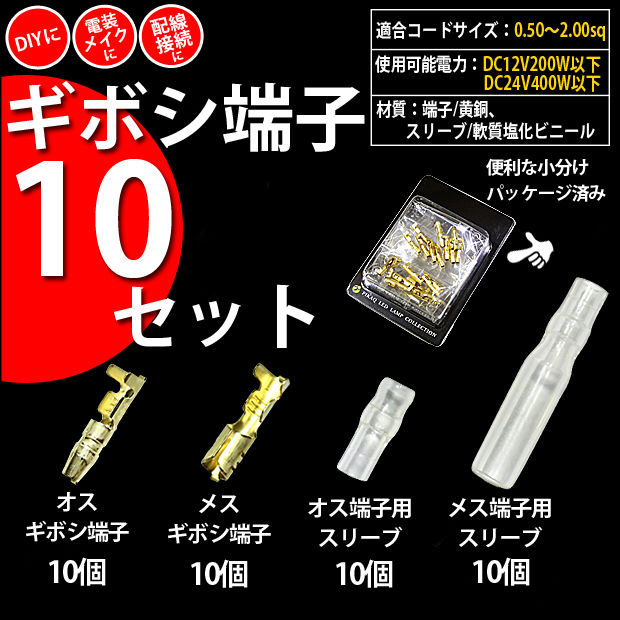 【即納】【メール便可】【お得な10個セット】ギボシ端子10セット オス/メス端子 オス/メススリーブ各10個