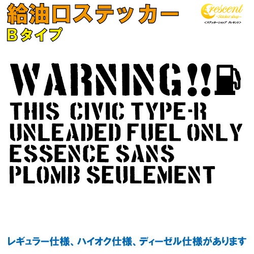 シビック TYPE-R : CIVIC TYPE-R 給油口ステッカー Bタイプ 全26色 【EK9 FD2 FK2 FK8】【車...