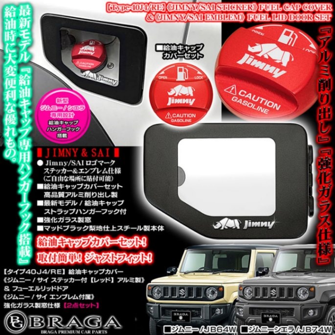 タイプ40J4/RE[ジムニー/サイ]レッド給油キャップカバー&エンブレム付 フューエルリッドドアセット ジムニーJB64/シエラ...