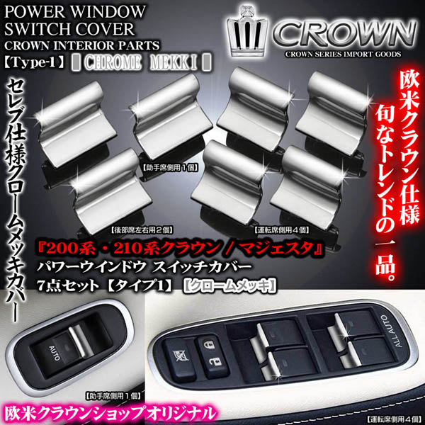 【タイプ1】200/210系クラウン・マジェスタ[クロームメッキ・7点セット]パワーウインドウ ボタン/スイッチカバー欧米クラウン...