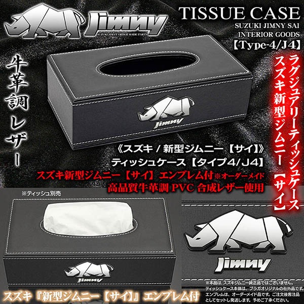 JB43W/74W,JB31/32【スズキ新型ジムニー[サイ]エンブレム付】ティッシュケース《タイプ4/J4》ブラック牛革調PVC...