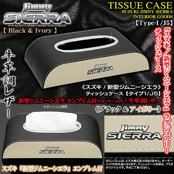 JB43W/74W,JB31/32【スズキ新型ジムニー[サイ]エンブレム付】ティッシュケース/ブラック&アイボリー《タイプ1/J4...