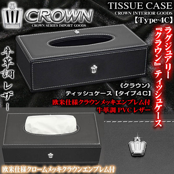 210/200クラウン《クラウン》ティッシュケース【タイプ4C】ブラック牛革調PVC合成レザー[クラウンメッキエンブレム付]ブラガ
