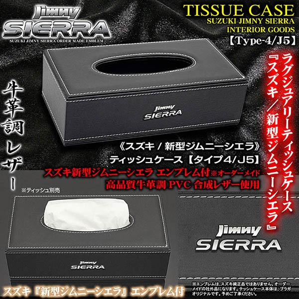 【スズキ新型ジムニーシエラ エンブレム付】ティッシュケース《タイプ4/J5》ブラック/牛革調PVCレザー/客注品/ブラガ