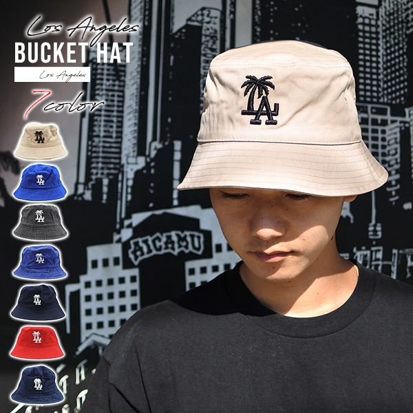 バケットハット メンズ レディース #85 全3色 LA 刺繍 ブラック ブルー ベージュ 黒 青 ロサンゼルス Los Ange...