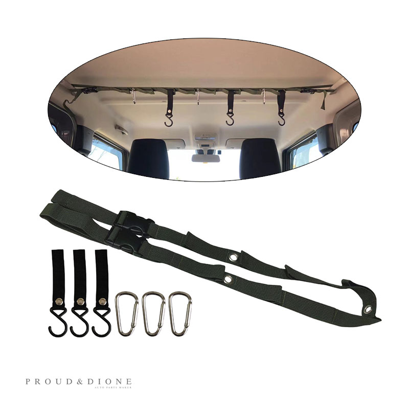 PROUD GEAR プラウドギア ハンギングベルトセット カラビナ フック付 丸穴3ヶ所 車内収納 オリーブカーキ アウトドア ...