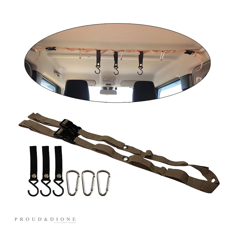 PROUD GEAR プラウドギア ハンギングベルトセット カラビナ フック付 丸穴3ヶ所 車内収納 サンドカーキ アウトドア レ...