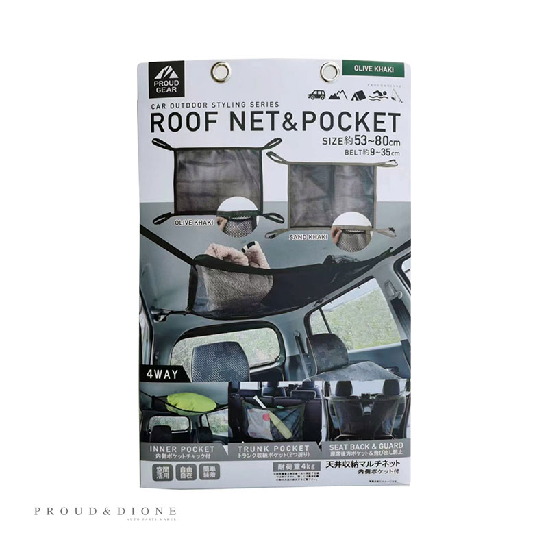 PROUD GEAR プラウドギア 天井収納マルチネット 車内収納 ルーフ オリーブカーキ 内側ポケット付 隙間活用 便利 アウト...