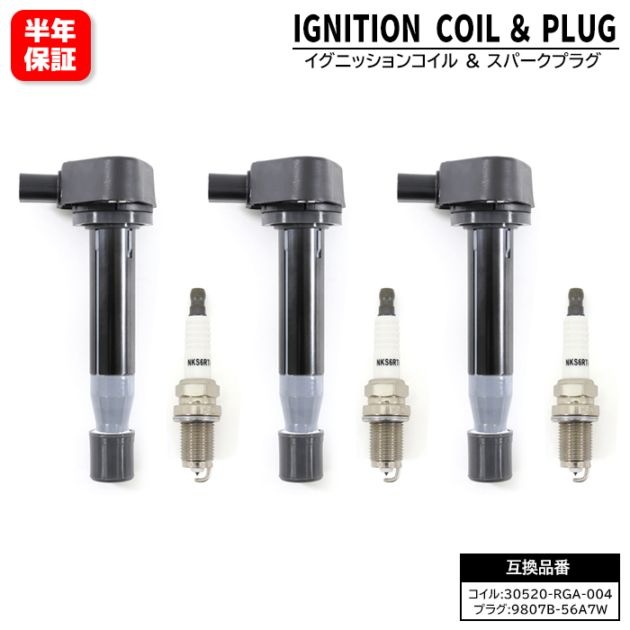 イリジウム スパークプラグ & イグニッションコイル 3セット 9807B-56A7W 30520-RGA-004 互換品 6ヵ月...