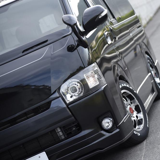 HELIOS 200系ハイエース 4型 5型 6型 7型 8型 標準 LEDフロントリップスポイラー 未塗装 S-GL DX 外装...