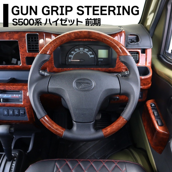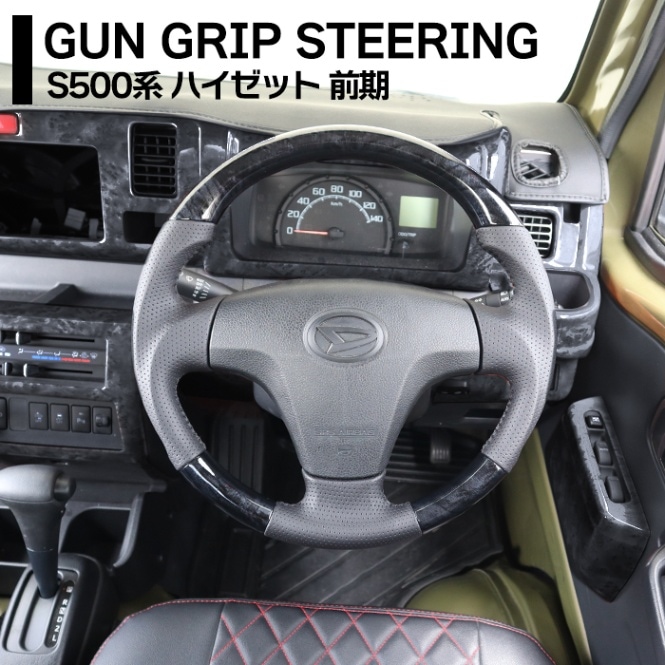 ハイゼットトラック S500P S510P 前期 ガングリップステアリング 黒木目 新品 ハンドル ハイゼットジャンボ S500系...