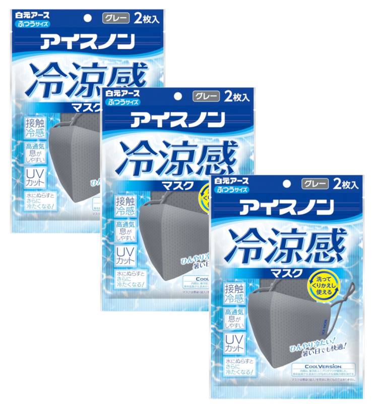 マスク 布 アイスノン 冷涼感マスク グレー 2枚入×3【3個セット】【ネコポス】 送料無料 涼しい 夏用 冷感マスク