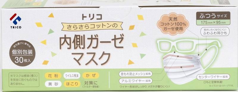 コットン マスク trico トリコ さらさらコットンの内側ガーゼマスク ふつうサイズ 30枚