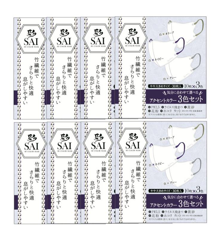彩 saiマスク立体 不織布 バイカラーマスク アクセントカラーやや大きめサイズ 30枚×8【8個セット】送料無料 おしゃれマスク...