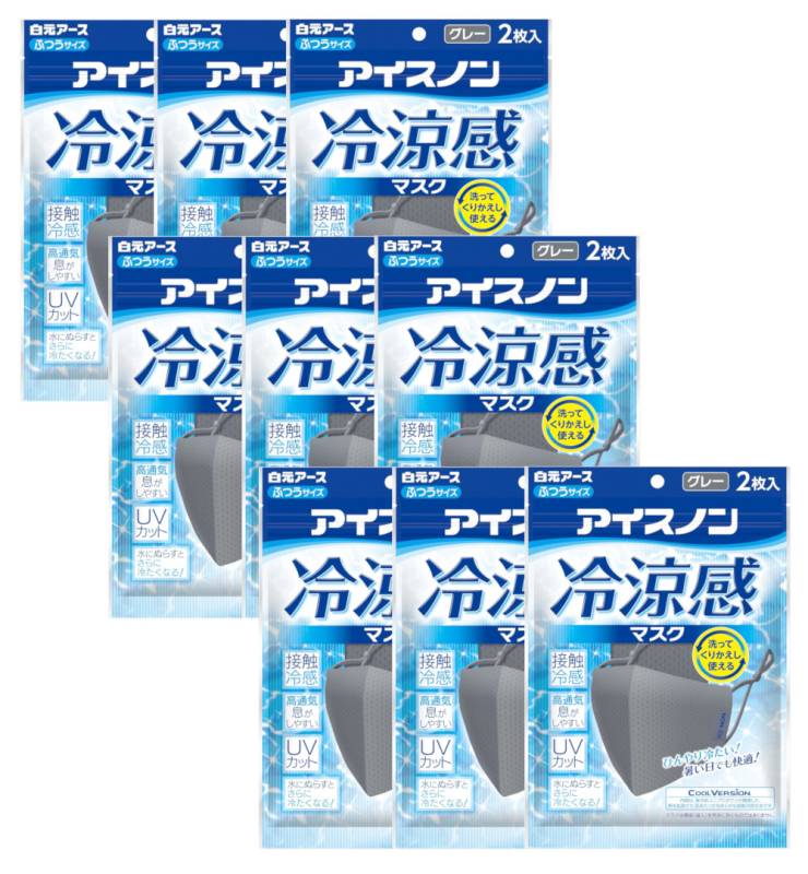 マスク 布 アイスノン 冷涼感マスク グレー 2枚入×9【9個セット】 送料無料 涼しい 夏用 冷感マスク