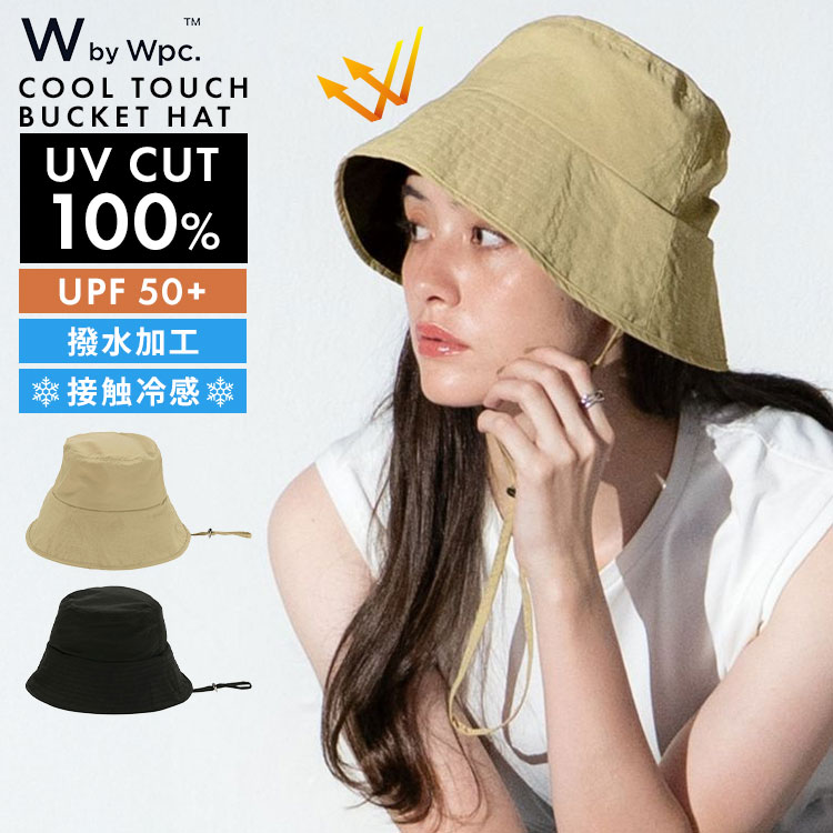 UVカット 帽子 Wpc. レディース バケットハット 遮光100% 完全遮光 UPF50+ 接触冷感 撥水 つば広 あご紐付き ...