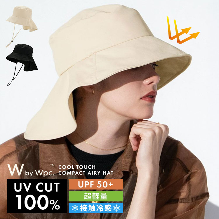 UVカット 帽子 Wpc. レディース つば広 首元 日焼け防止 完全遮光 UPF50+ 超軽量 接触冷感 ワイヤー入り あご紐付...