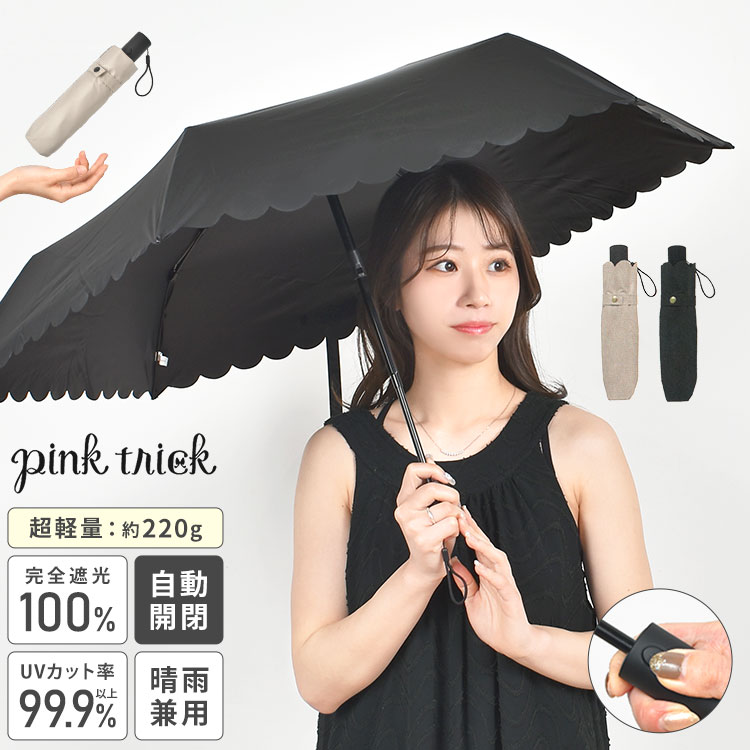 日傘 折りたたみ 完全遮光 晴雨兼用 pink trick ピンクトリック UVカット 自動開閉 完全 遮光 100 かわいい ス...