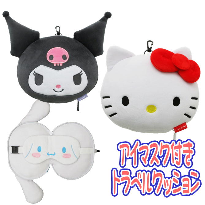 アイマスク付きトラベルクッション サンリオ キャラクター トラベルまくら キティ クロミ シナモロール ユニック 旅行 出張 移...