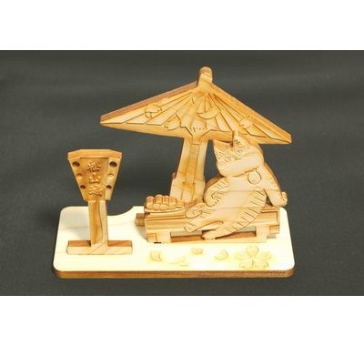 瀬戸焼 四季物語 夏 夏の日の思い出 海水浴 (S451) 猫の季節飾り Seto-yaki Cat seasonal ornam...