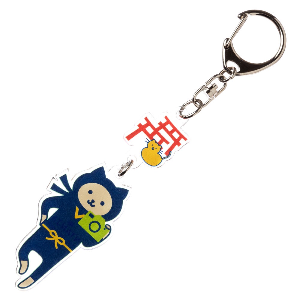 NYANJA キーホルダー京都 鳥居 ずっとこっちみてる猫の忍者 スーベニール Key ring