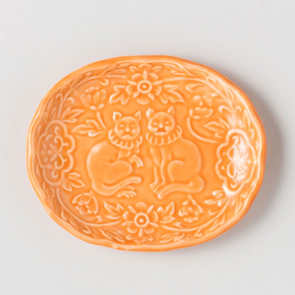 BARBAR 狛猫(こまねこ) たたら3寸皿 橙 波佐見焼・磁器 長崎県の工芸品 Komaneko saucer Hasamiy...