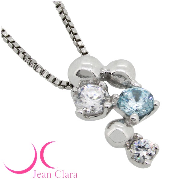 Jean Clara トリプルジルコニア ブルー シルバーネックレスギフトBOX付き シルバーアクセサリー レディースネックレス ...