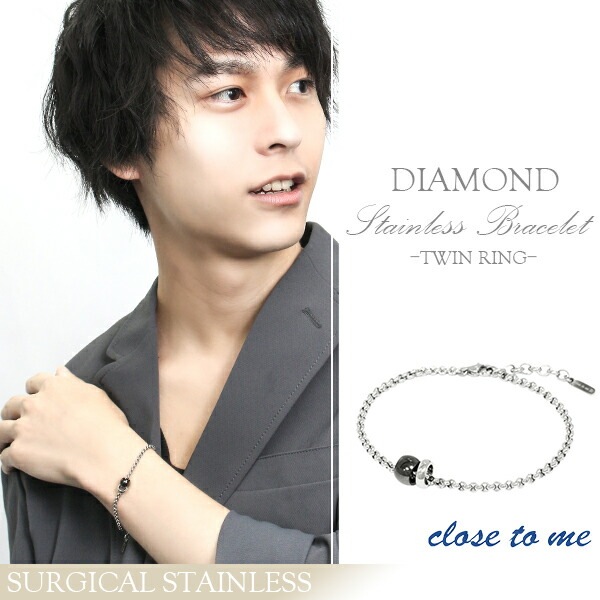刻印無料 close to me ダイヤモンド ビーズ サージカルステンレス ブレスレット 刻印 ステンレス チェーン ダイヤ ギ...