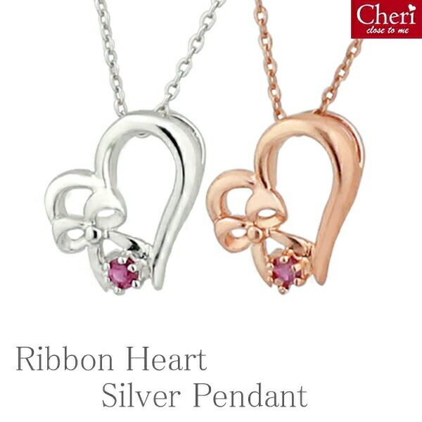 Cheri リボン ハート ピンクサファイア シルバーネックレス シルバーアクセサリー レディース ネックレス 女性用 ブランド ...