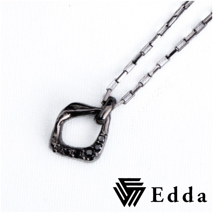 【Edda/エッダ】ひし形の5ブラックジルコニア シルバーネックレス【専用ギフトBOX付き】