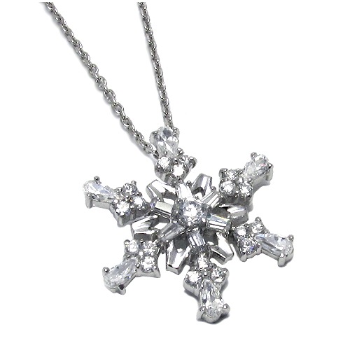雪の結晶とジルコニアのペンダント シルバーネックレスギフトBOX付き レディース ネックレス 雪 結晶 シルバー925 女性用 プ...