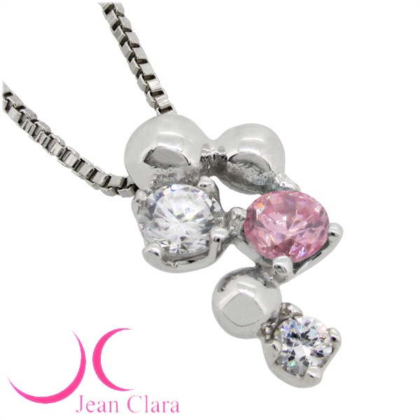 Jean Clara トリプルジルコニア ピンク シルバーネックレスギフトBOX付き シルバーアクセサリー レディースネックレス ...