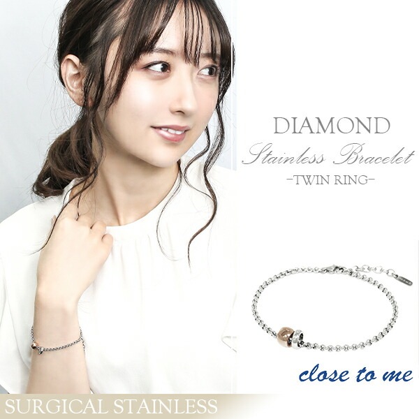 刻印無料 close to me ダイヤモンド ビーズ サージカルステンレス ペアブレスレット ステンレス チェーン ギフトBOX...