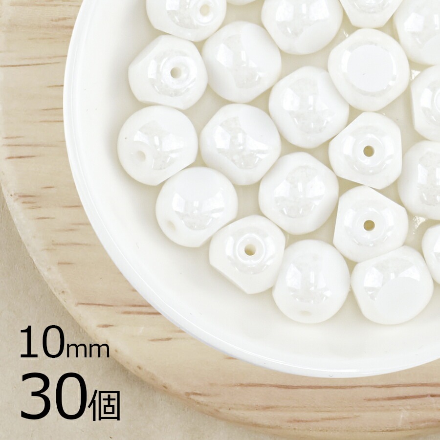 【まとめ買い割引】【30個】3面テーブルカットチョークホワイトラスター 白系 ホワイト 約10mm ハンドメイド 手芸 材料 チェ...