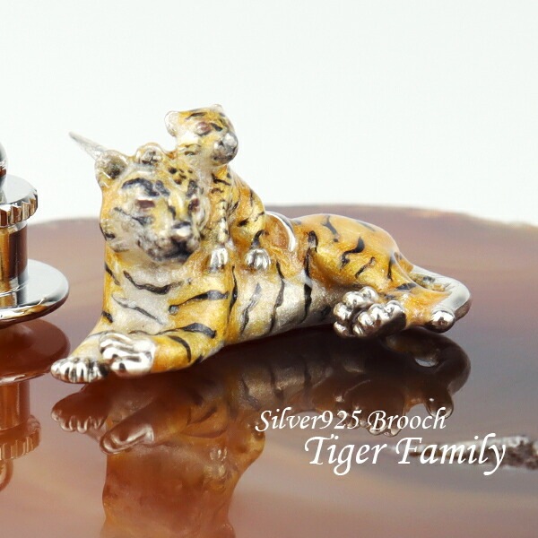 サツルノ 虎の親子 シルバー925 ピンブローチ 親子 虎 ピンバッチ ブローチ シルバーブローチ トラ タイガー 動物 縁起物 ...