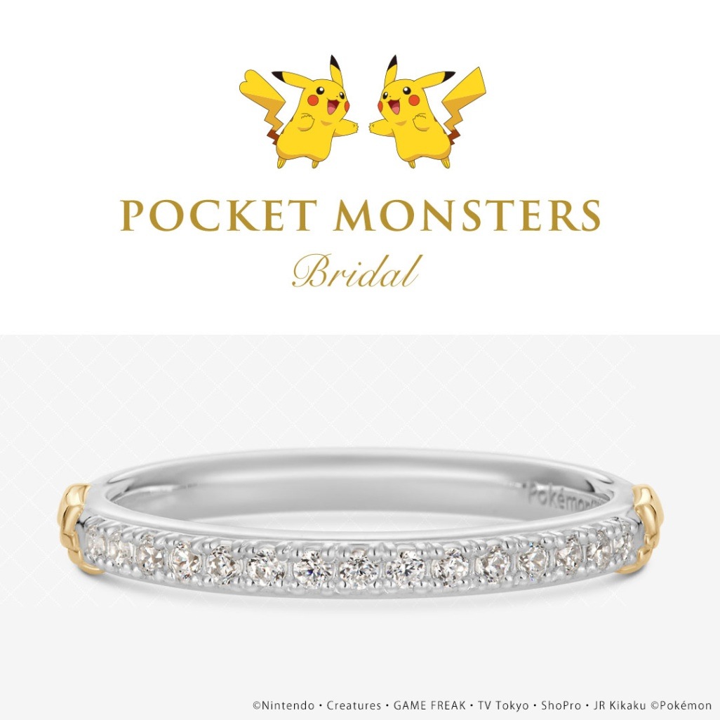 【ポケモン】ピカチュウ ハーフエタニティリング プラチナ×K18イエローゴールド