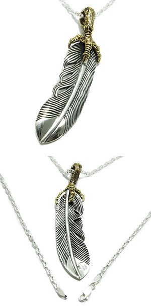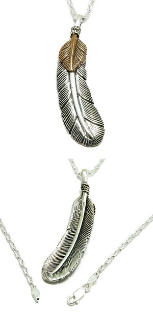 ☆送料無料☆ホークスクロウ フェザー ブラスインシルバー ネックレス