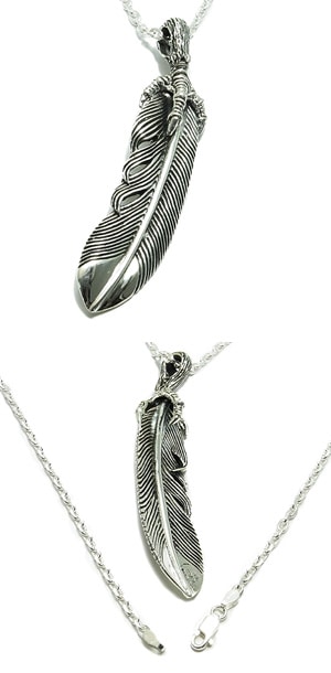 ☆送料無料☆ ワイルド フェザー ブラスイン シルバー ネックレス