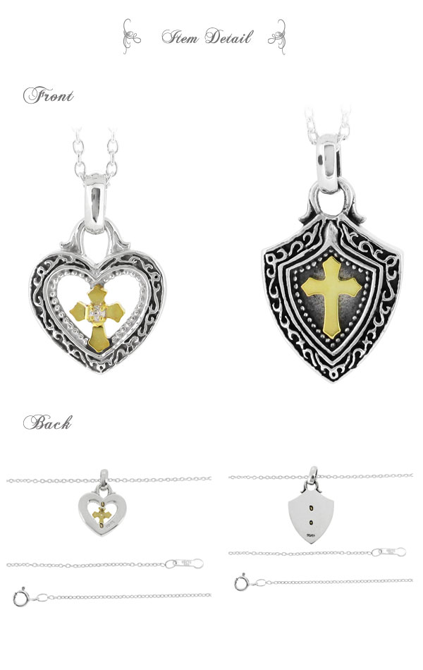 ☆ 送料無料 ☆シールド&ハート シルバー ペアネックレス