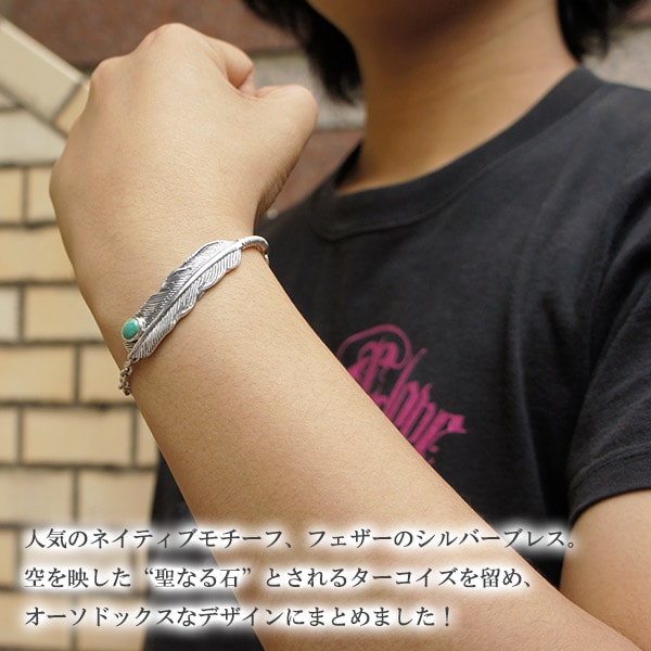 ★送料無料★ ターコイズ フェザー チェーン シルバーブレスレット