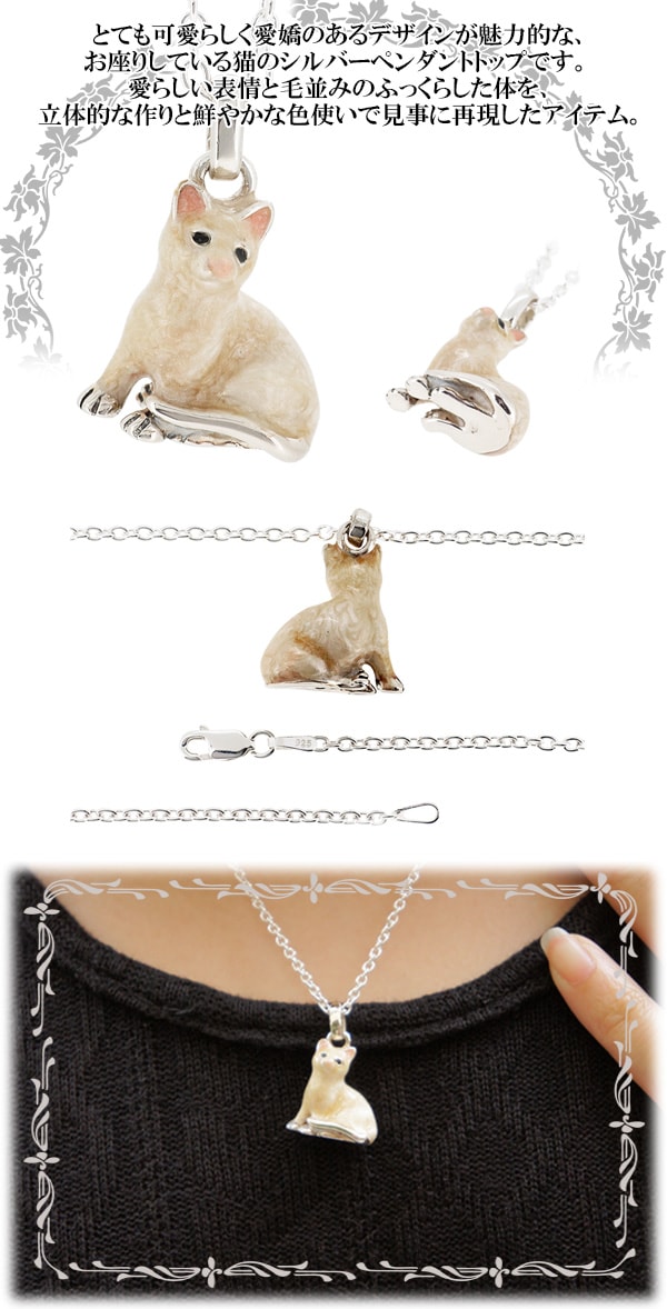 ★ 送料無料 ★お座り 猫の シルバー ペンダントトップ