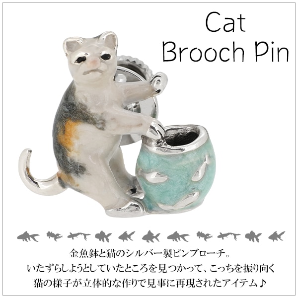 ★送料無料★ 猫と金魚鉢 シルバー ピンブローチ